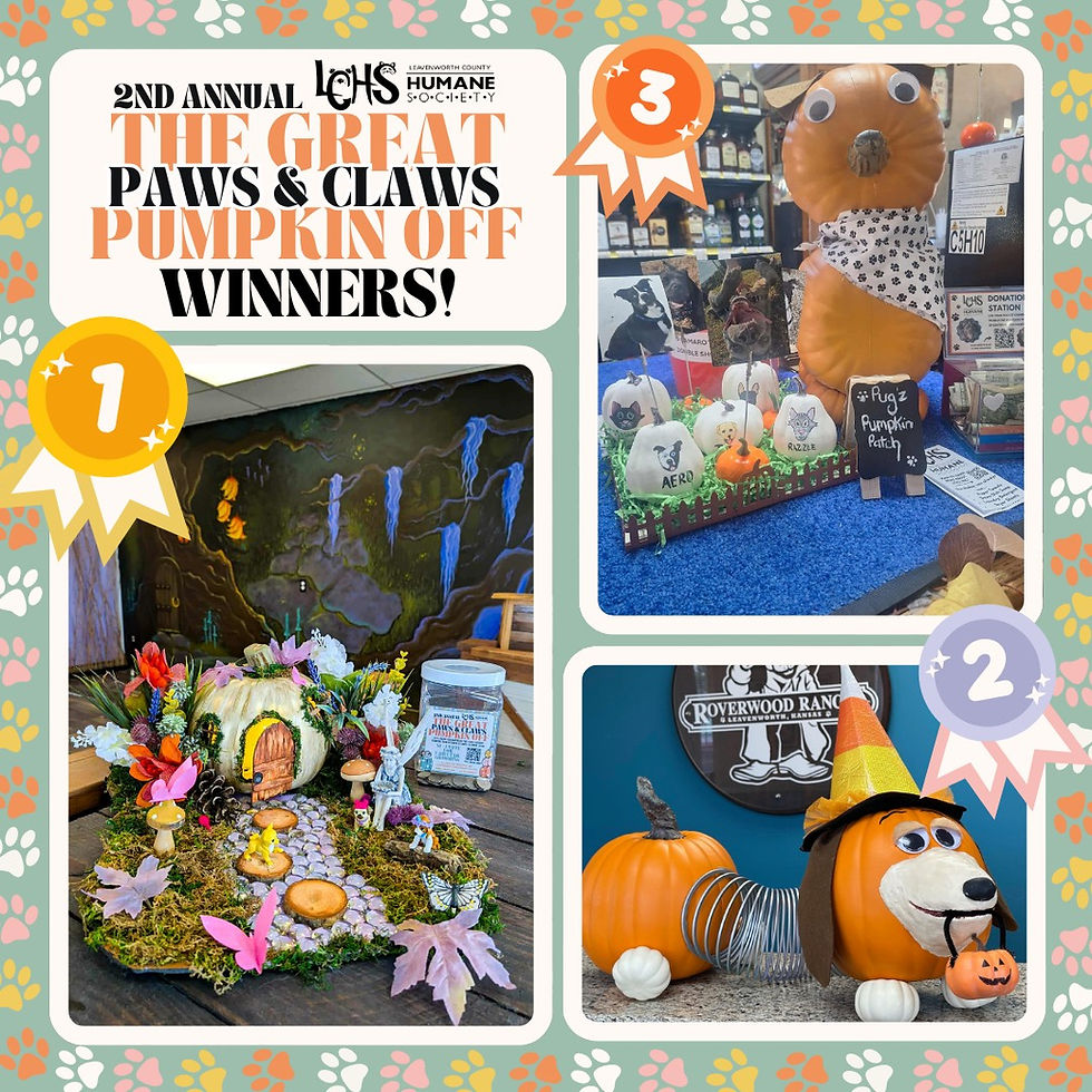 Because of you, this year’s Pumpkin Off raised $2,182.42 to help care for the pets at Leavenworth County Humane Society! We couldn’t be more grateful for all the continued support from our community and we will never be able to thank you all enough for everything that you do for these dogs & cats!