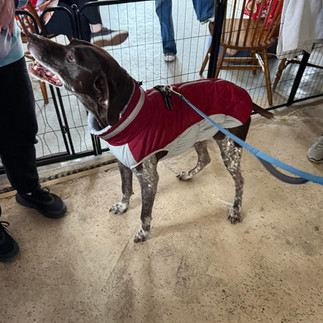 This year, we’ve been incredibly fortunate to transfer three dogs in their golden years to the Ranch, giving them a calmer, more comfortable environment while they search for their new families! The first of those three was Conrad! He was found as a stray in May near the Country Club Bank on 4H Road in Lansing. As an older gentleman, shelter life was overwhelming for him, so we reached out to Imagine Furever Ranch to see if they had space.. and thankfully, they did! In June, Connie moved to their care and was settling into life at the Ranch well, making friends with both people and pups!